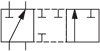 574Е = електромагнітна з боку каналу В, у перехідному стані золотника всі канали перекриті: