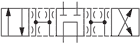 Приклад умовного позначення гідравлічного золотникового розподільника, з умовним проходом 6 мм, зі схемою розподілу 64, з механічним керуванням перемиканням потоків робочої рідини, з пружинним поверненням без фіксації, для роботи в помірному кліматі: